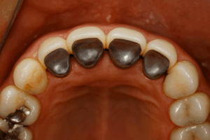 また、クラウンを被せるための土台をコアーと呼びますが、保険での治療で金属を用いる場合、良質とはいえない銀合金を用いることになります。長期的に見ますと銀合金は歯牙の変色を誘発しますし、強度もかなり弱いものです。歯の治療での基礎工事にあたるコアーでさえ、そのような状態ですので本工事に当たるクラウンに用いる金属も、決して良い材質とは言えません。